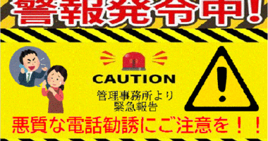 管理事務所より緊急のお知らせです。最近管理事務所に会員様より「知らない不動産屋さんより持っている別荘を売りませんか?と電話がかかってくる」といった…