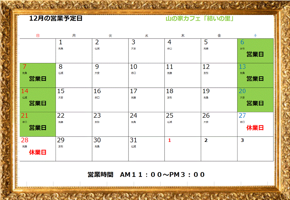 *12月27日(土)、28日(日)は臨時休業とさせていただきます。